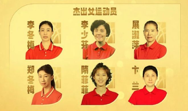 杰出女运动员一样有三位前辈,加上大家熟悉的辽篮大前锋付豪的母亲展淑萍,和曾经跟王治郅传过绯闻的女篮名将随菲菲。